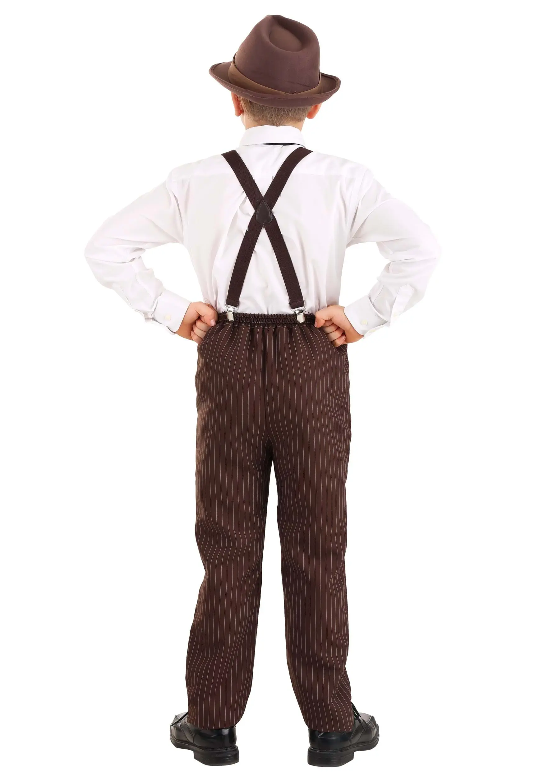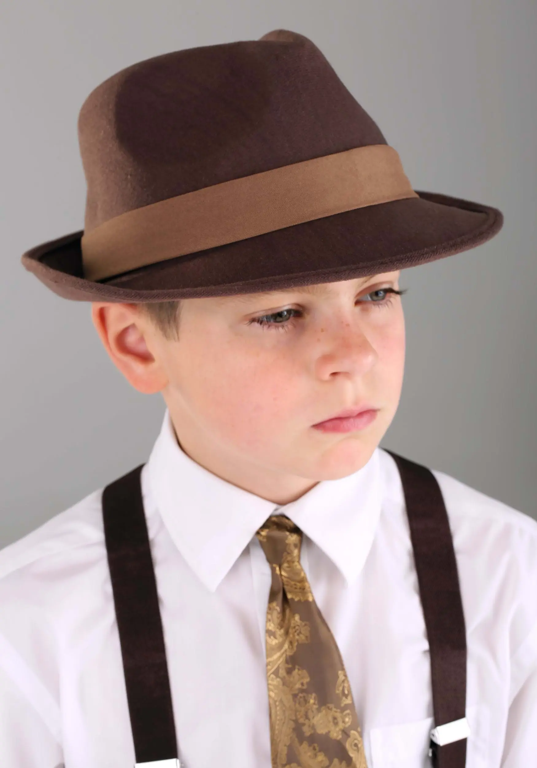 This Clyde costume starts with a pair of pinstripe pants a pair of suspenders included, which attach to the waist. The suspenders have metal buckles and adjustable straps, so you can get a comfortable fit for your young gangster. The necktie can be used with any button-up shirt, so you can use a shirt from their closet to complete the look. Finally, the costume comes with a fedora-style hat, which has a light tan band around the crown. Put it all together and your child will have those big boss vibes that any heist needs!