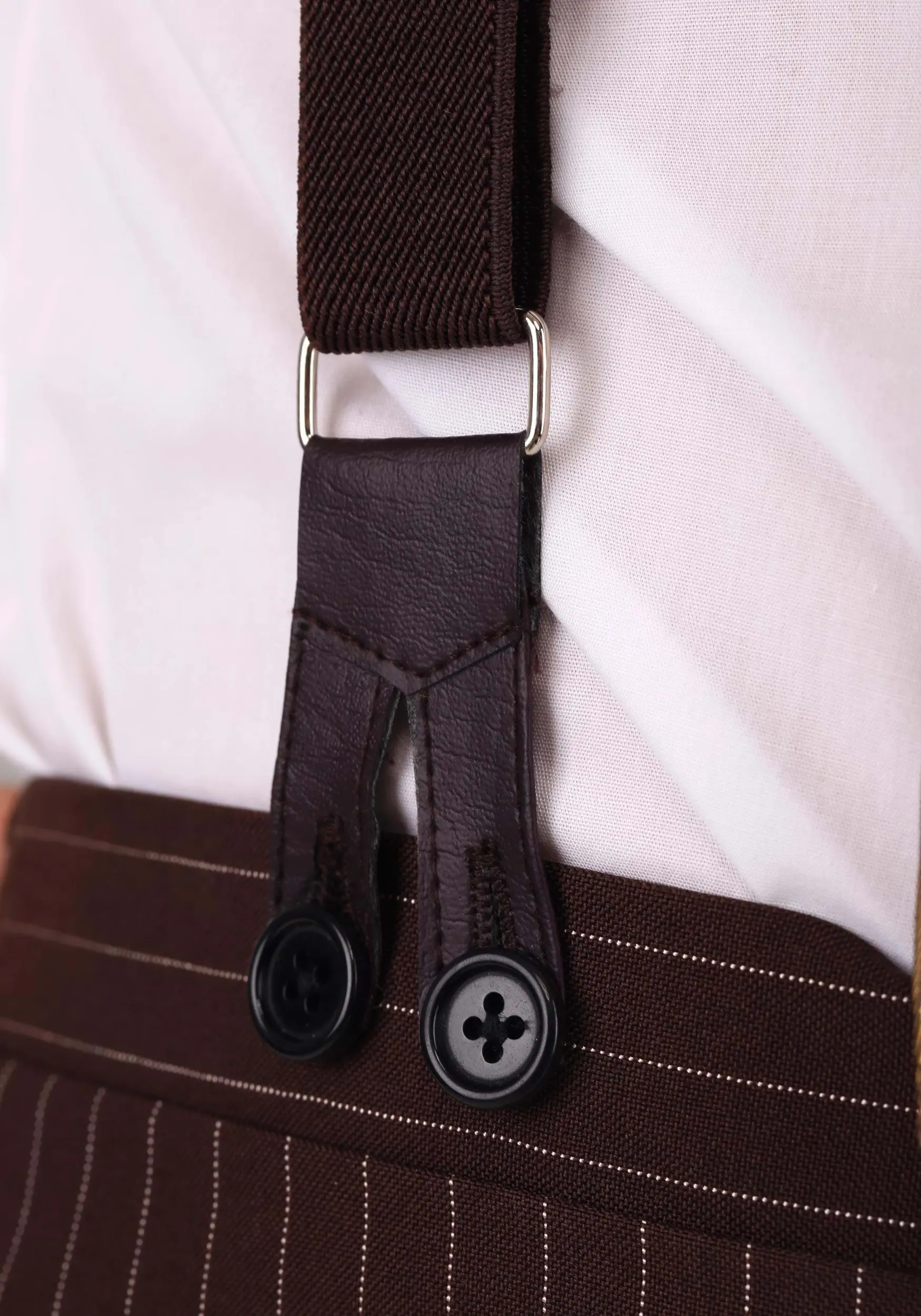 - Length-adjustable elastic suspenders attach to pants w/ metal clips