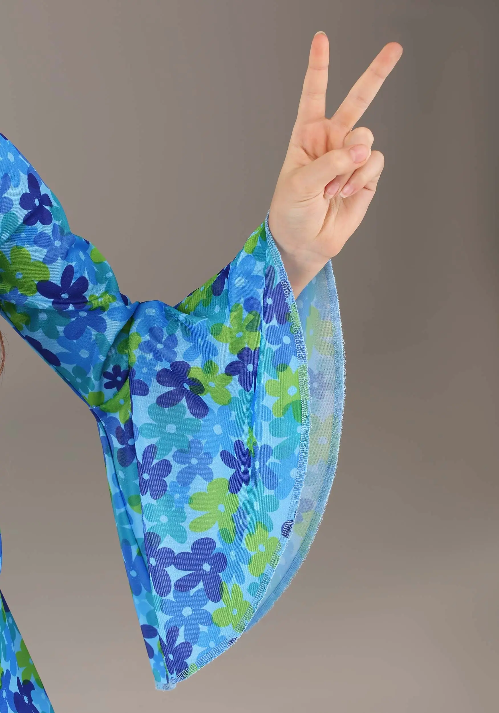 You’ll love moving and shaking in our exclusive Wild Flower 70s Dress Costume for Girls! The blue-and-green flowered material is far out and funky, and the dress’s swingy skirt is perfect for twirling. The fab bell sleeves are super fun for fluttering when you’re doing the Robot or the Lawn Mower. The sweet matching headband is just the ticket for styling your long flower-child hair. Grab a great pair of go-go boots and you’ll be ready to dance the night away!