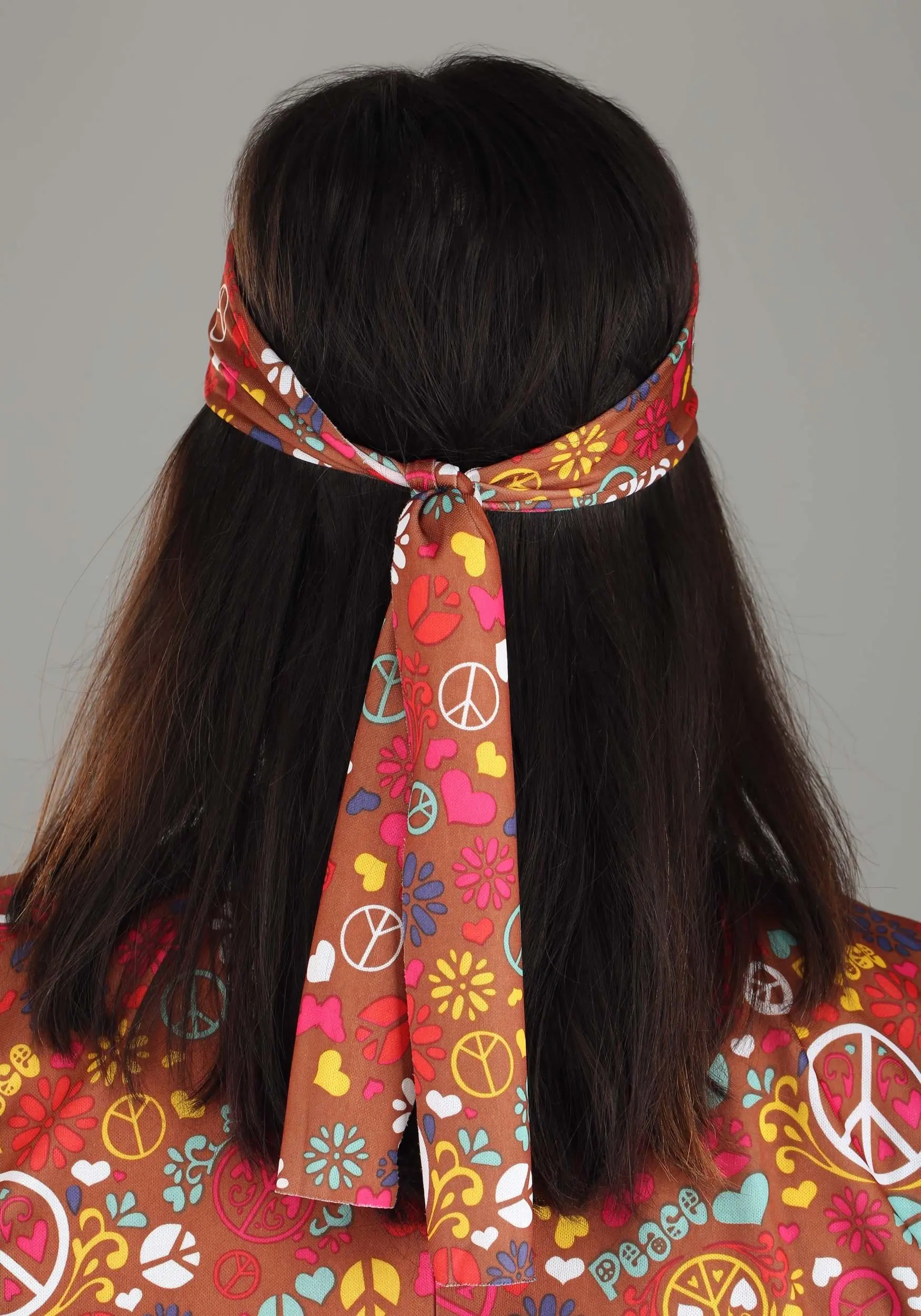 Styled as V-neck mini-dress with an attached fringe vest, this costume is made with 100 percent polyester knit & faux suede materials. Matching fringe boot covers continue the theme, and when you style your hair and wear the printed headband, well, you’re going to be totally groovy. When you choose this costume, don’t just return to a better time—bring peace and love from the past back into the future and spread the love!